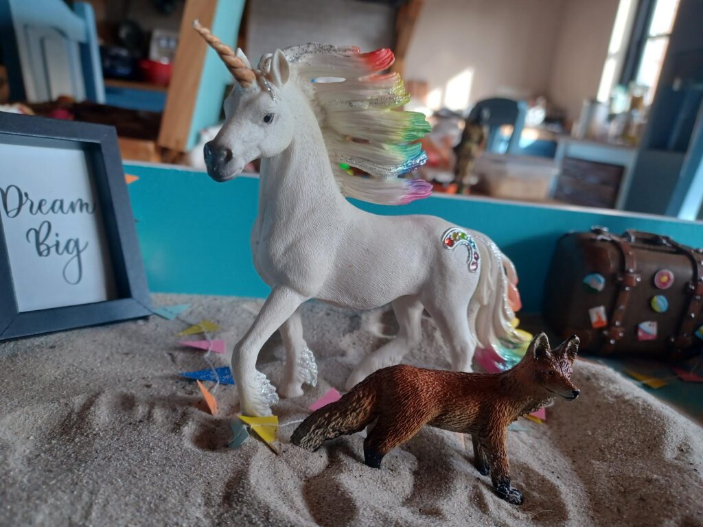 De blikopener sessie verruimt je blik, je ziet meer. We bekijken en bespreken wat er in beeld komt. In het tweede beeld in de zandbak kijken we naar een mogelijk doel of toekomstbeeld. De eventuele valkuilen die je wilt overwinnen en de mogelijkheden en kansen komen duidelijk in beeld.