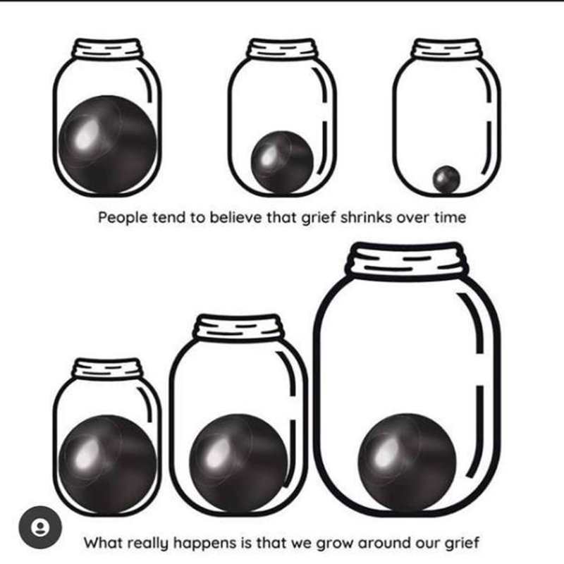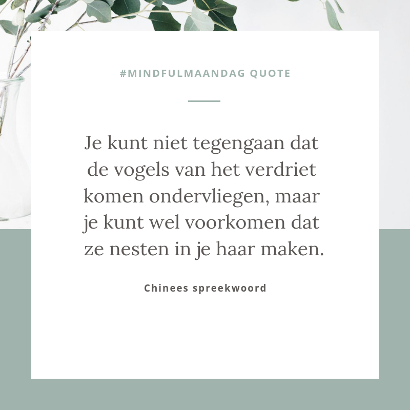 “ROUWEN IS ALS EEN ROEIBOOT MET TWEE RIEMEN. DE ENE RIEM STAAT VOOR HET VERDRIET VAN HET VERLIES. DE ANDERE RIEM STAAT VOOR HET VERDER LEVEN. AAN BEIDE RIEMEN MOET WORDEN GETROKKEN OM VOORUIT TE KOMEN. ANDERS BLIJF JE RONDJES DRAAIEN.”